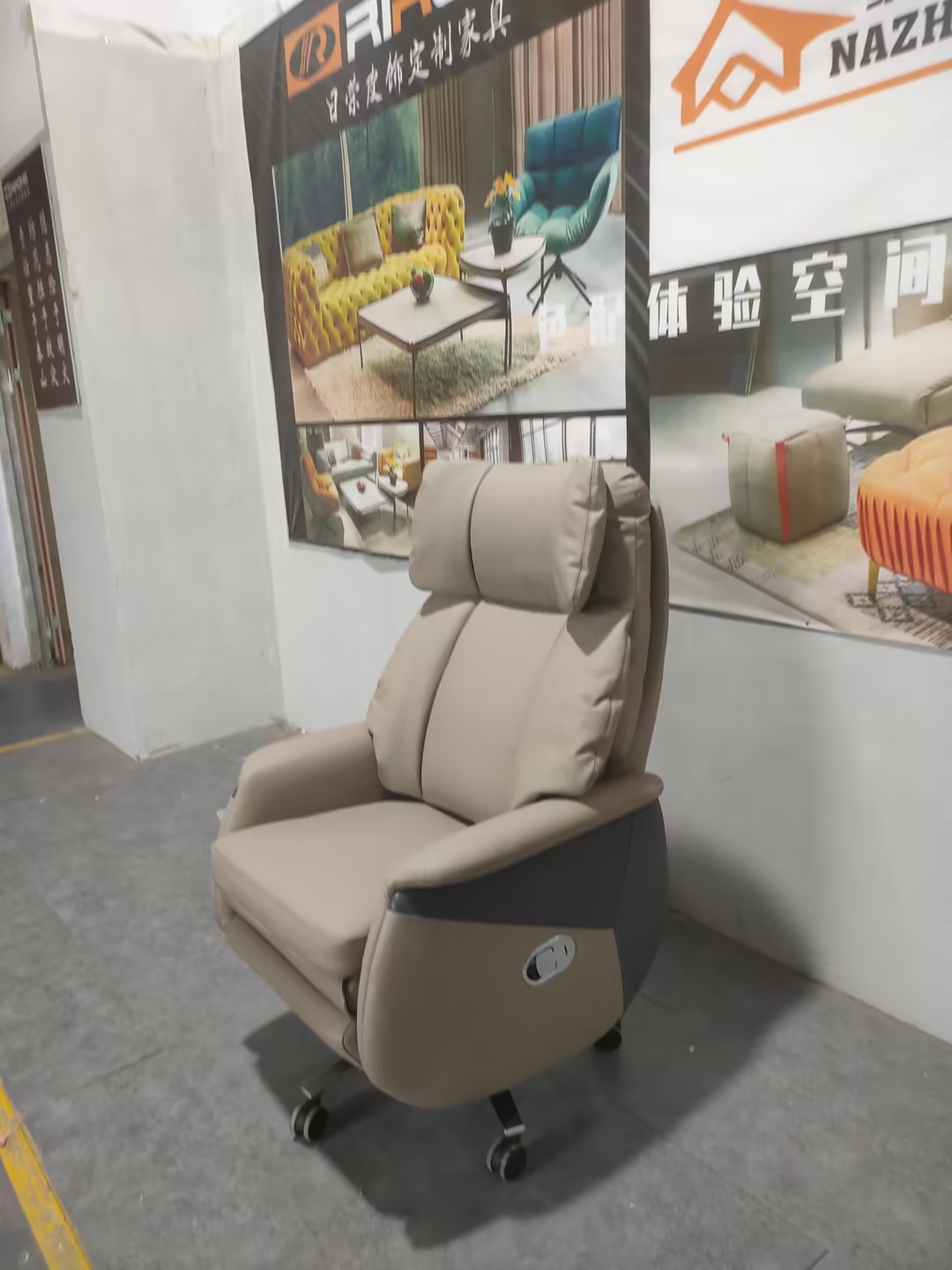 Brown Leather Furniture Electric Recliner – Classic brown, the epitome of sophistication. This electric recliner combines vintage charm with modern design, featuring smooth leather and seamless electric adjustment. Our custom design options allow you to tailor the chair to your exact preferences, while the quality assured through every stage of production and assembly is highlighted in the detailed workshop images