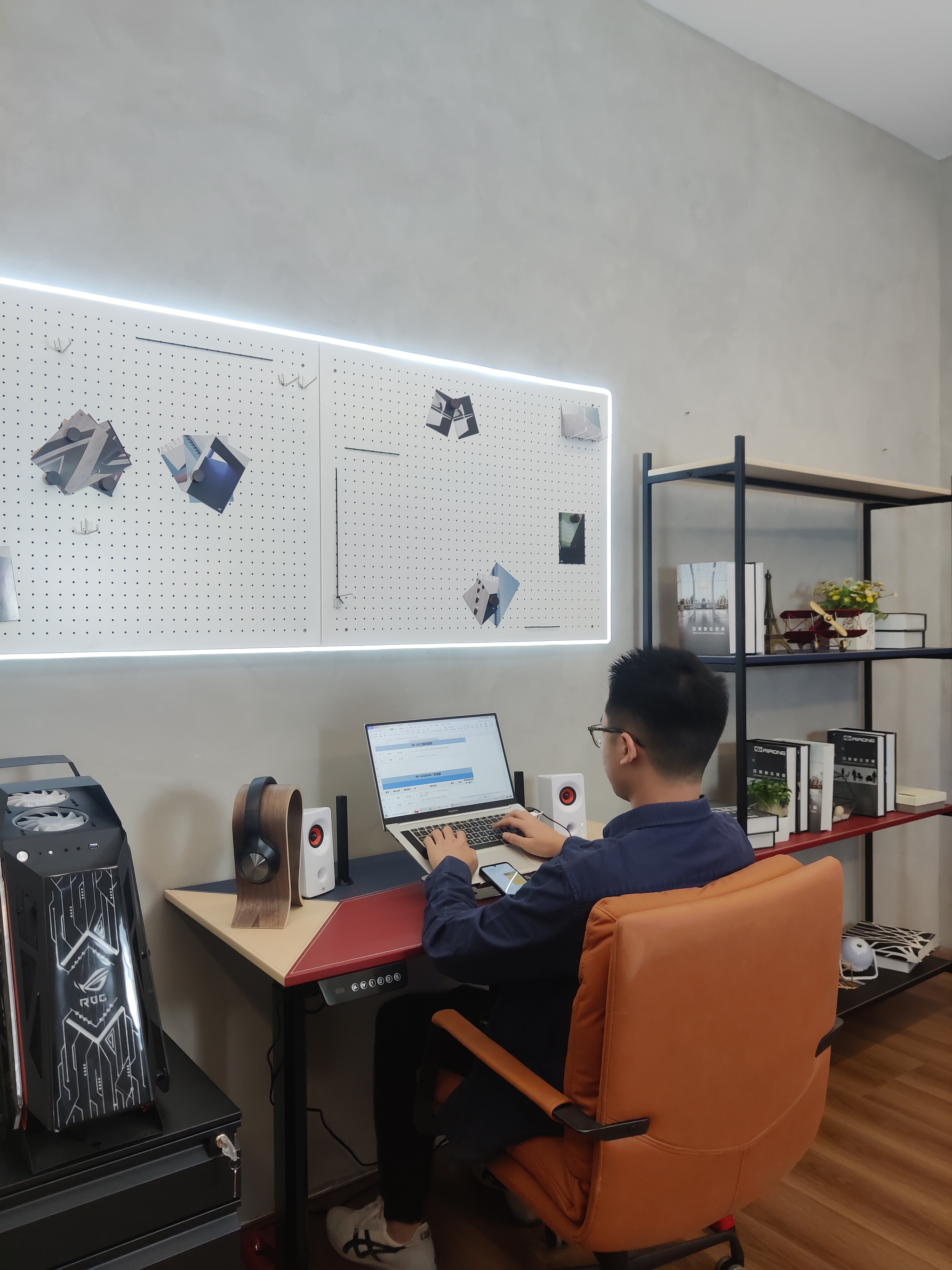 Equipped with intelligent lifting black technology desk, the height can be adjusted as you want. This office experience is really wonderful!