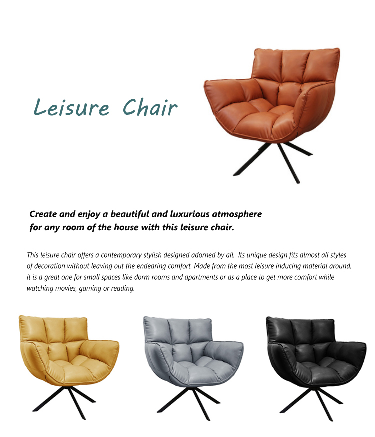 This leisure chair offers a contemporary stylish designed adorned by all. Its unique design fits almost all styles of decoration without leaving out the endearing comfort. Made from the most leisure inducing material around, it is a great one for small spaces like dorm rooms and apartments or as a place to get more comfort while watching movies, gaming or reading.