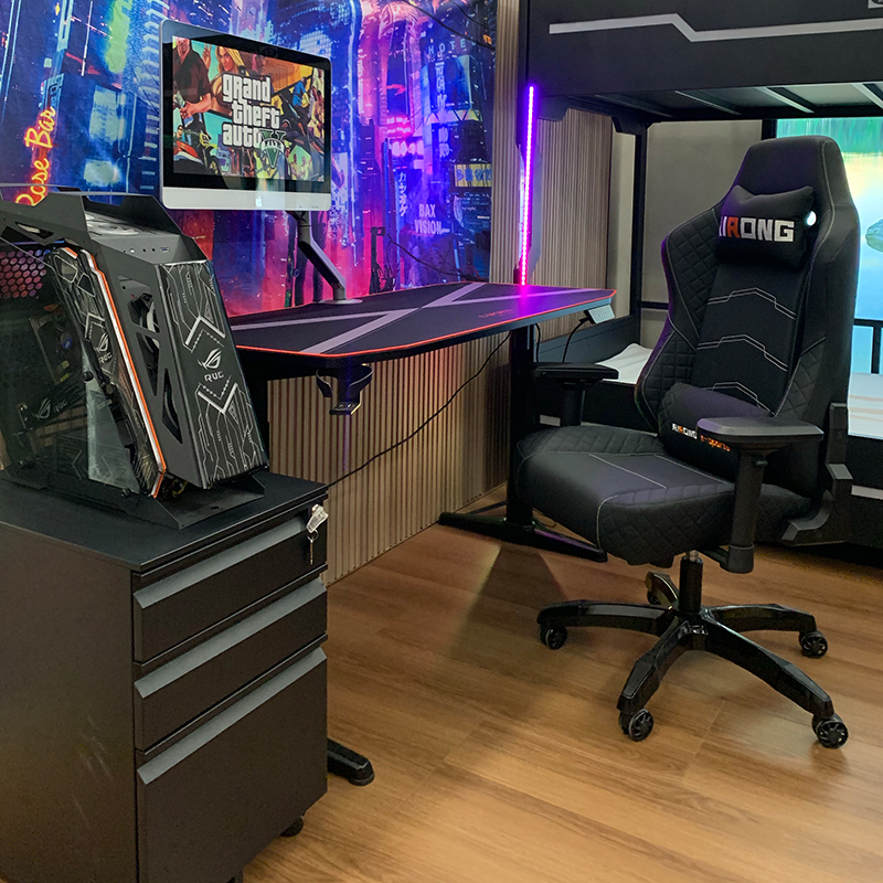 【Ultra-quiet High-Performance motor Lift System】Special design provides smooth and reliable height adjustment; upgraded legs with ultra-thick 1.2mm commercial-grade high-precision steel. This gaming desks utilize an ultra-stable and sturdy T-shaped leg design to stand up to any serious gamer’s demands.