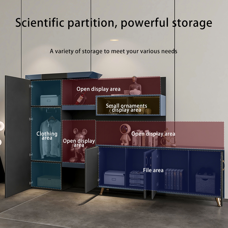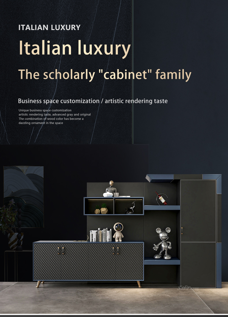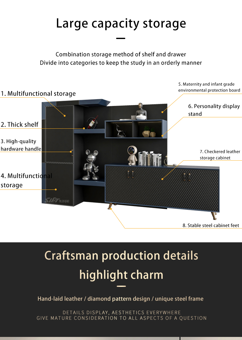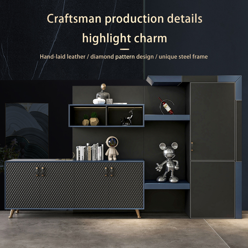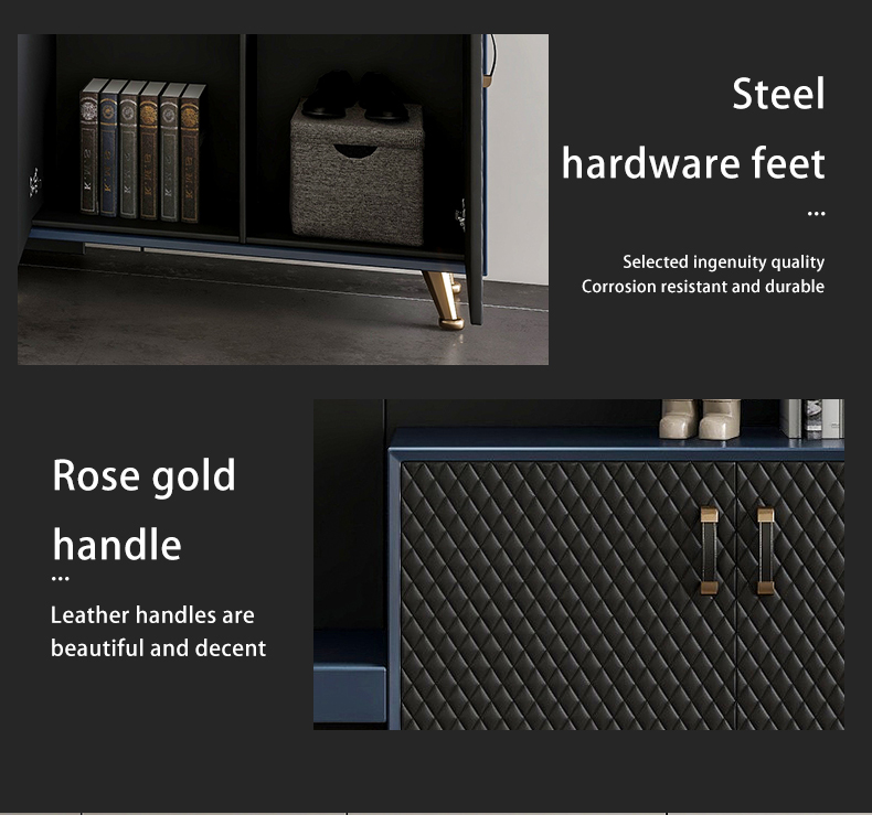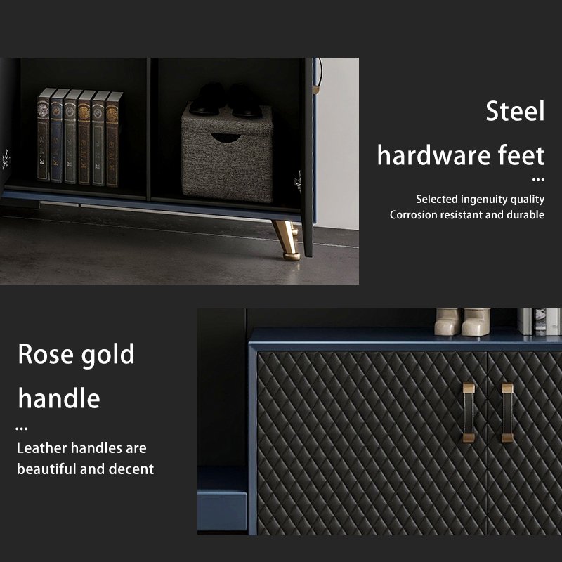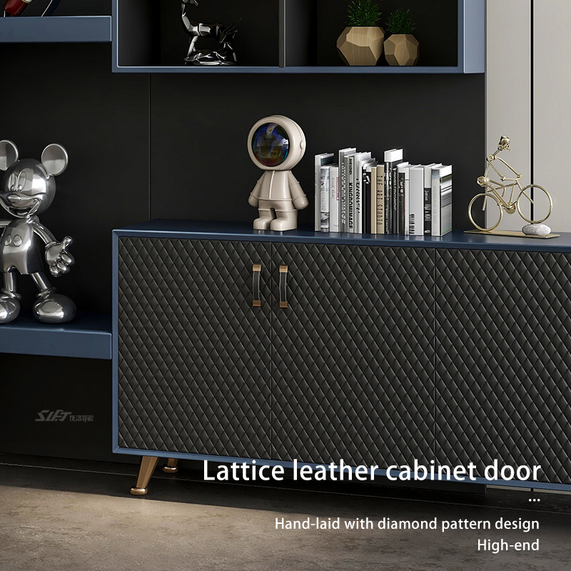 Craftsman production details highlight charm Hand-laid leather / diamond pattern design / unique steel frame Details display, aesthetics everywhere give mature consideration to all aspects of a question Door filing cabinet Various file clerk Easy placement Lattice leather cabinet door Hand-laid with diamond pattern design High-end Steel hardware feet Selected ingenuity quality Corrosion resistant and durable Rose gold handle Leather handles are beautiful and decent office leather decoration fashion floor cabinet Italian style light luxury bookcase simple oversized stor Hermes Bookcase-271