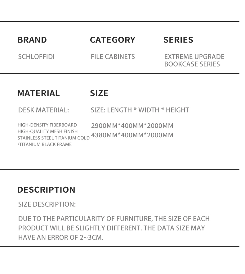 | 4380mm*400mm*2000mm | Stainless steel titanium gold/titanium black frame |
