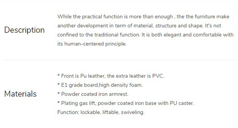 | RR-A886-3-office swivel chair | W630*D630*H1260mm | Upholstery front is pu leather,the extra is pvc leather |