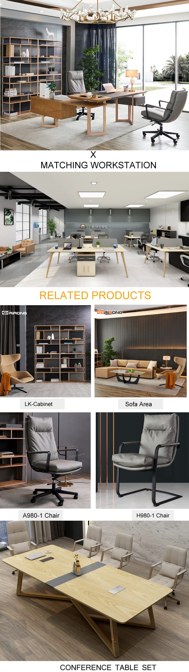 The RR-LK-MT 6 person conference table, Starting from the design, the conference table uses wood color as the basic colors. The surface of the table is covered with high-quality wood veneer. The middle is grey leather, and a wood sprayed stainless steel frame is used as a support. It not only has super load-bearing capacity, simple and stylish line design, but also highlights the beauty of the product, making the table one of the tools for matching different space styles. A comfortable office space can't do without a suitable meeting table.The choice of table can be matched according to the decoration style of the space or personal preference. A suitable chair can not only provide strong support for your work, relieve the fatigue of work, but also highlight your personal taste in the workplace.