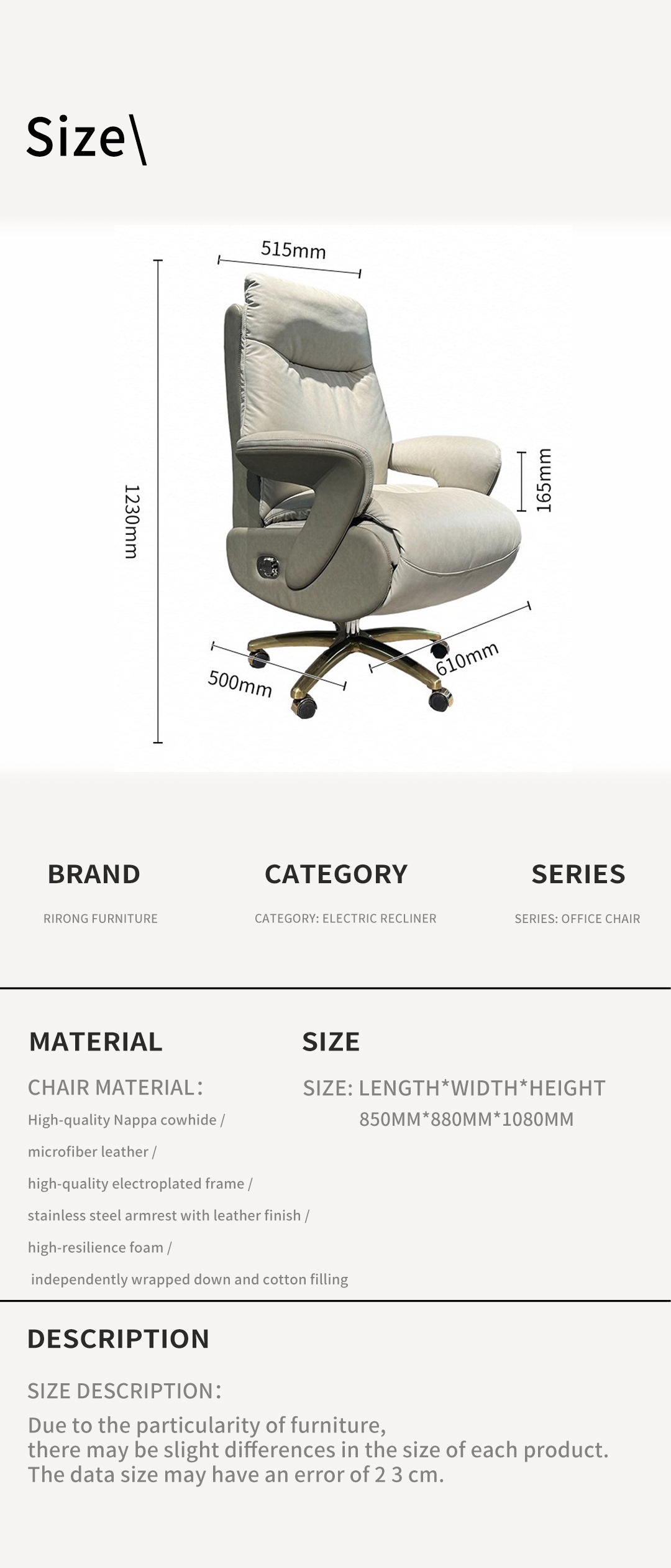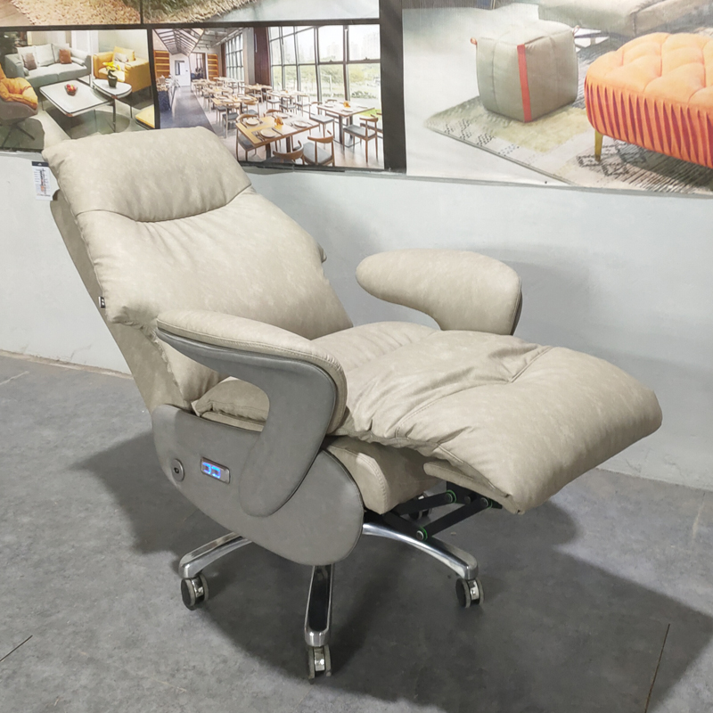 This electric recliner features an innovative armrest design as its core highlight, with a wide and smooth curved contour that perfectly fits the arm curve. The outer side integrates an intelligent touch panel, and the blue backlit button intuitively adjusts the backrest angle, achieving one click switching between office, reading, and resting. The armrest and chair body adopt color matching splicing technology, providing classic color schemes such as beige+dark gray, light gray+brown, etc., while supporting personalized color matching customization, easily matching the style requirements of modern study rooms, business offices and other spaces.
