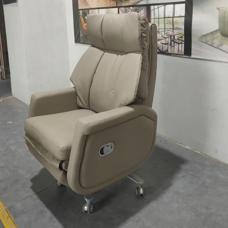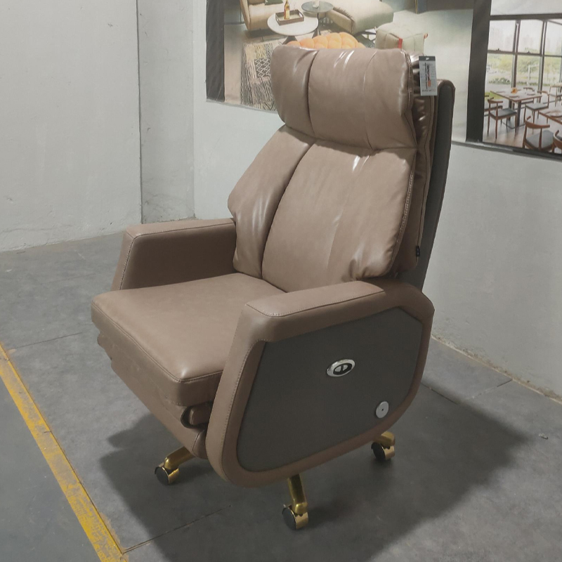 This electric recliner is designed with ergonomics at its core, featuring a high backrest and adjustable headrest to provide perfect support for the neck and waist. Classic main colors such as beige and light brown are available, with elegant grid patterns integrated on the sides to create a low-key sense of luxury. It also supports fully customized color matching schemes, making it easy to adapt to diverse spaces such as modern study rooms and business offices. The right armrest is equipped with silver touch buttons, allowing for one click switching between office, reading, or lying modes. The wide armrest curve fits snugly against the arm, ensuring a comfortable sitting experience. The bottom is equipped with silent universal wheels and a stable metal stand, which allows for flexible movement without disturbing people. Whether paired with a minimalist desk or as a finishing touch for a casual corner, checkered details and modular color schemes can add a sense of hierarchy to the space.