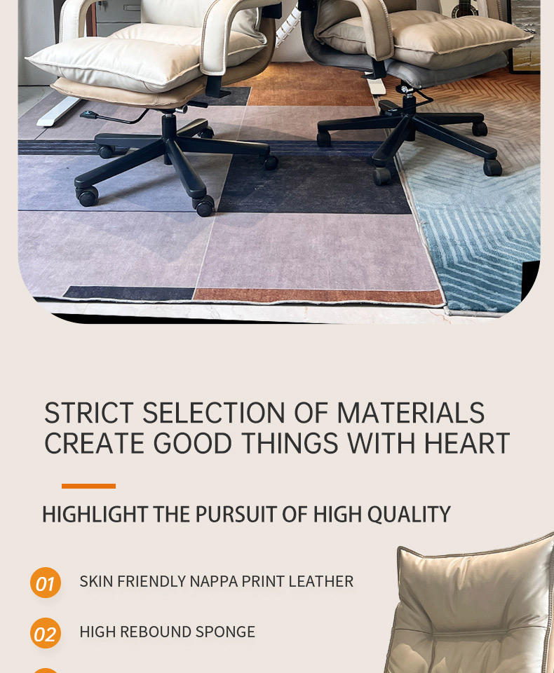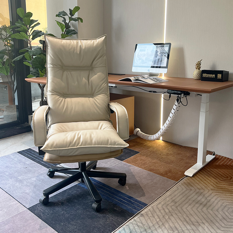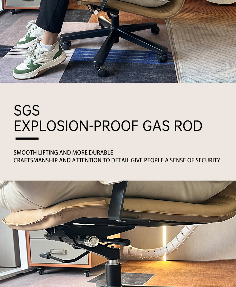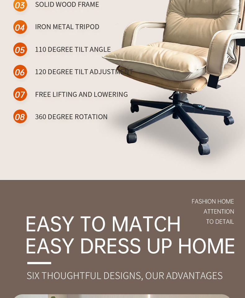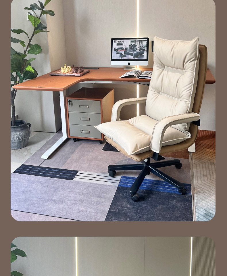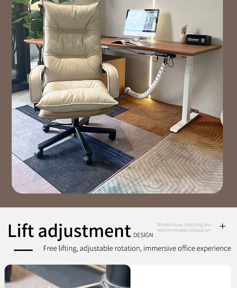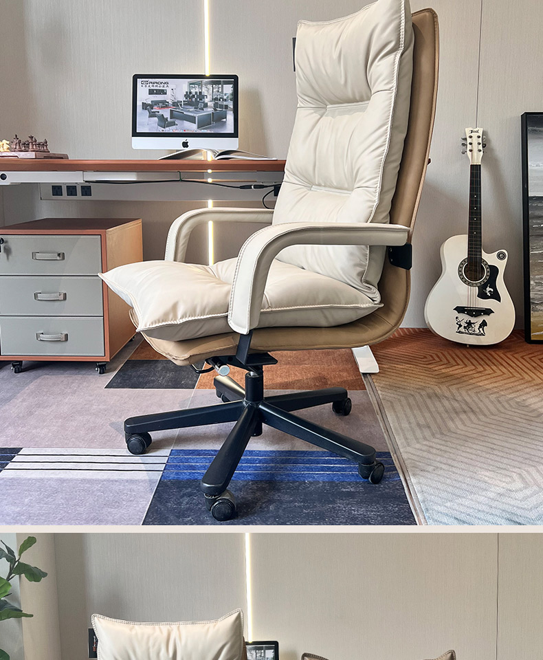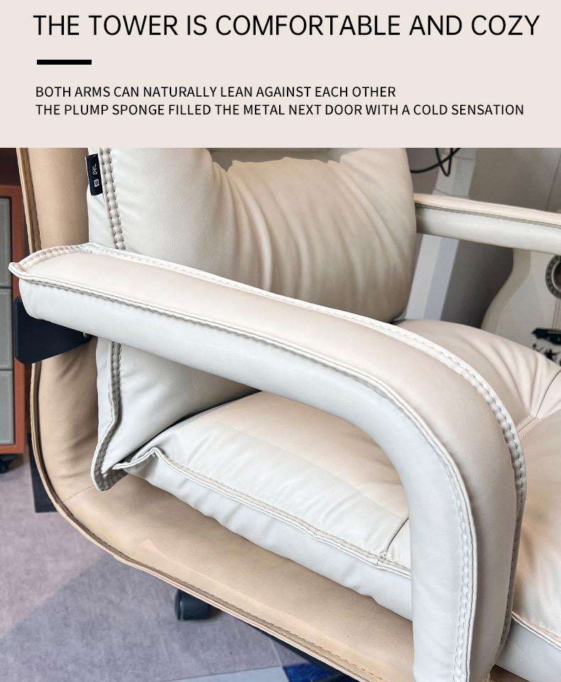 Interpreting a light luxury aesthetic with beige and brown tones, the cloud cushion fits every inch of the curve, and the armrest supports tired arms. The rotating base allows for free switching of working postures, whether it's focused keystrokes or bursts of inspiration, it's like being in the clouds. Let comfort become efficient productivity and crown your workplace life
