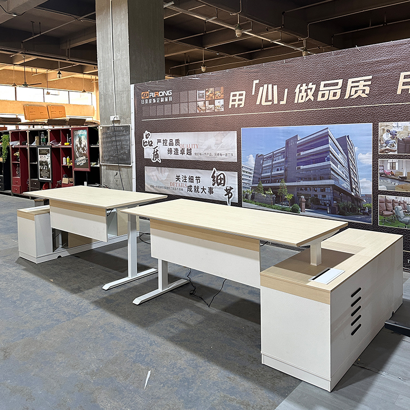This height-adjustable desk has a larger board and additional side cabinets, allowing more space for storing office supplies.