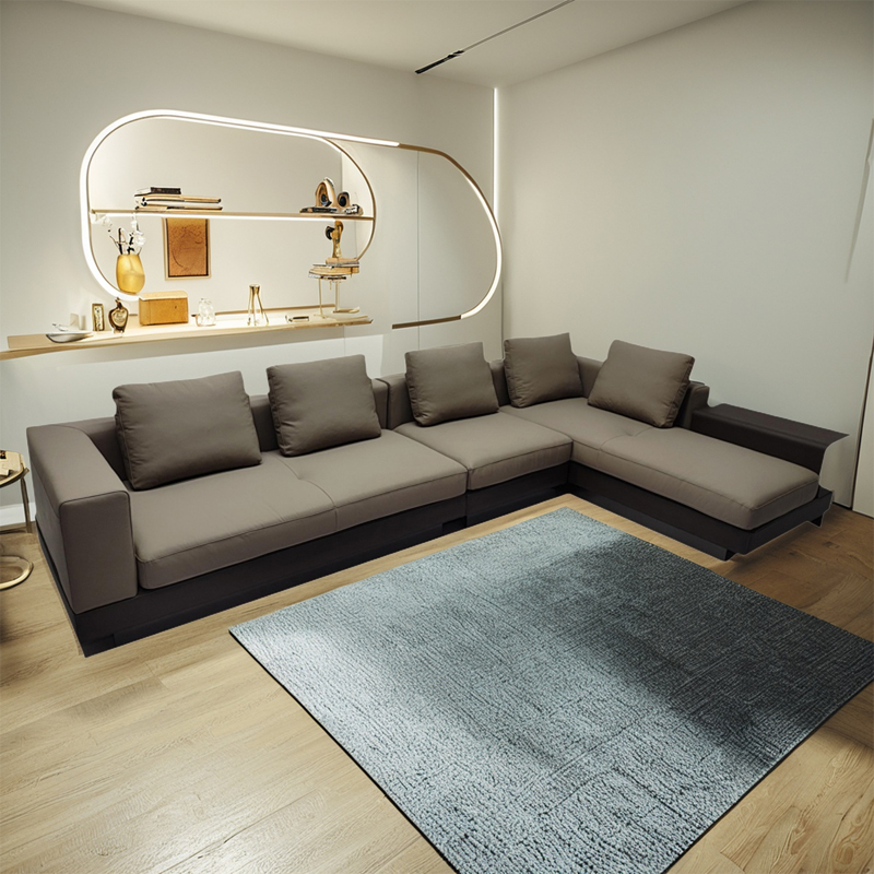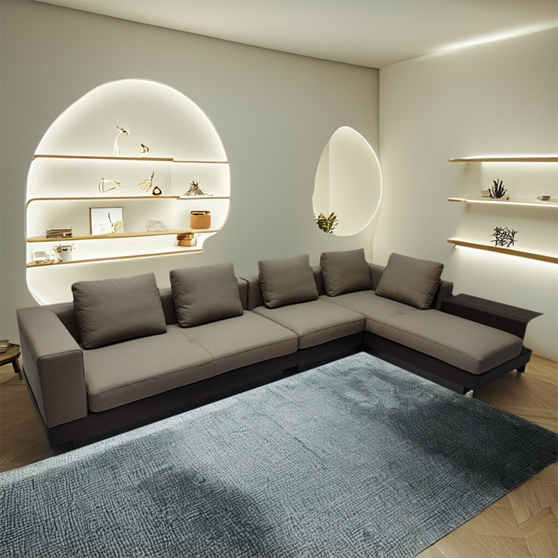 This Connery sofa interprets modern home aesthetics with its minimalist design! The L-shaped corner layout fits the wall, saving space and creating a grand atmosphere, making it perfect for both small living rooms and large flat floors. The premium grey fabric is soft and skin friendly, paired with full square cushions, providing a comfortable sitting experience and a visually layered feel. The modular design allows the sofa to be freely combined, with options for dark brown and light beige, making it easy to blend into Nordic, modern, or industrial spaces.