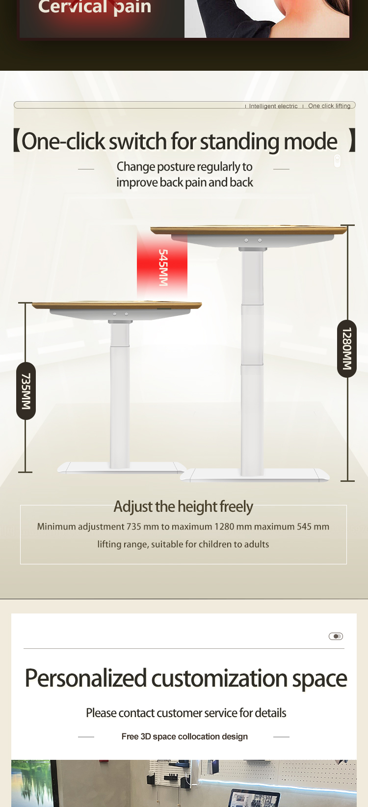 Design connotation: Leather Electric lifting table, personalized comfortable study experience, sit and stand alternately, adjust the comfortable height, three table frame design, a key to quickly switch high, can display a variety of color matching effect.