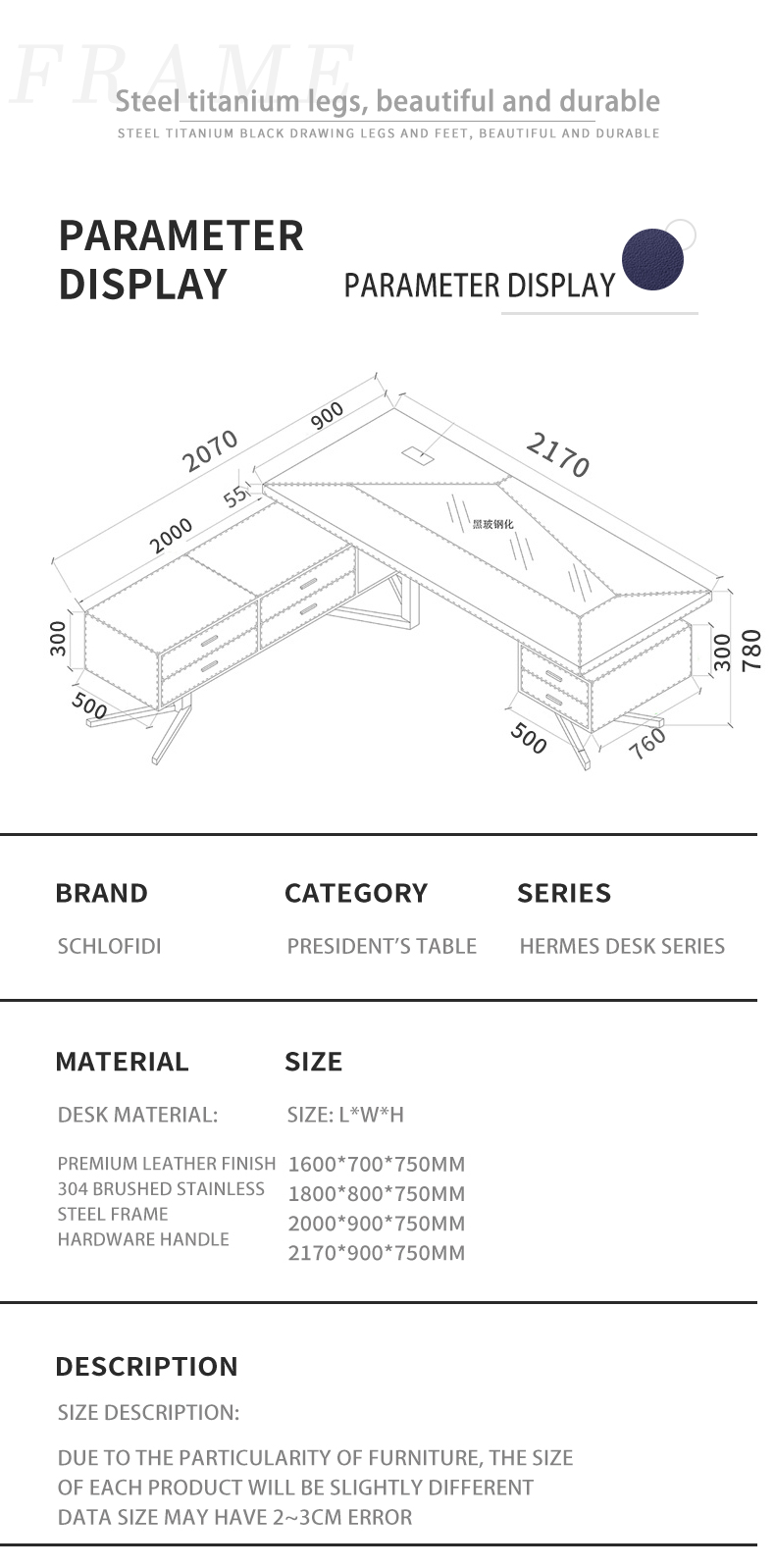 | Blue-luxury executive office desk | W1800*D800*h750 | Select E1 grade imported plates |