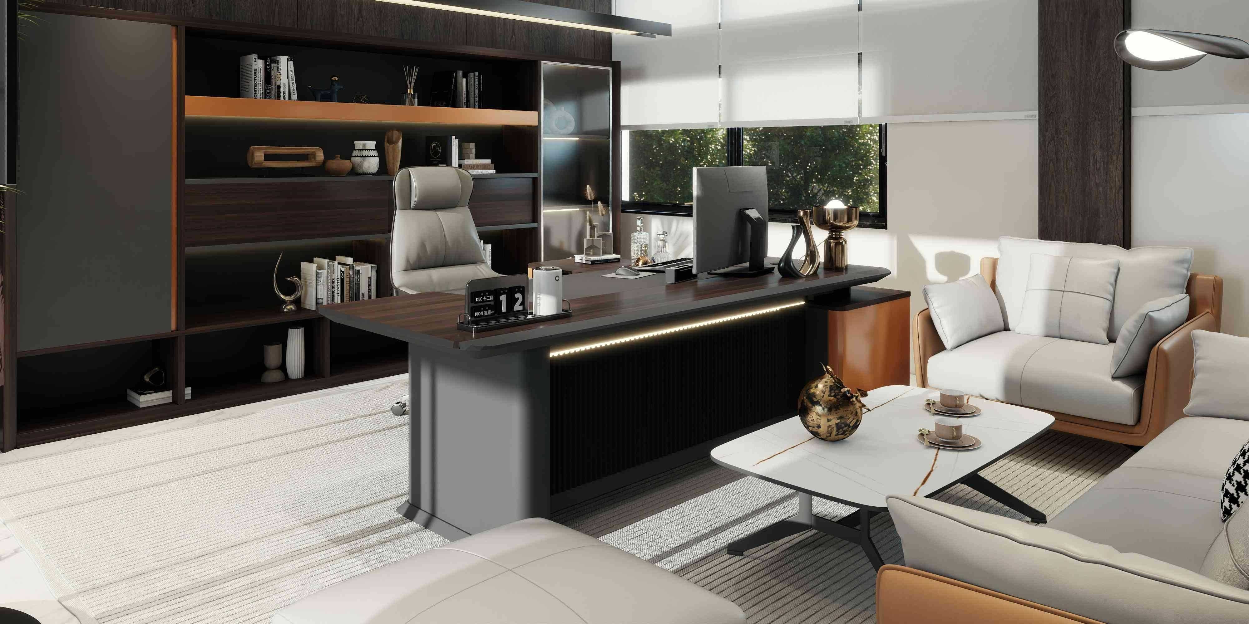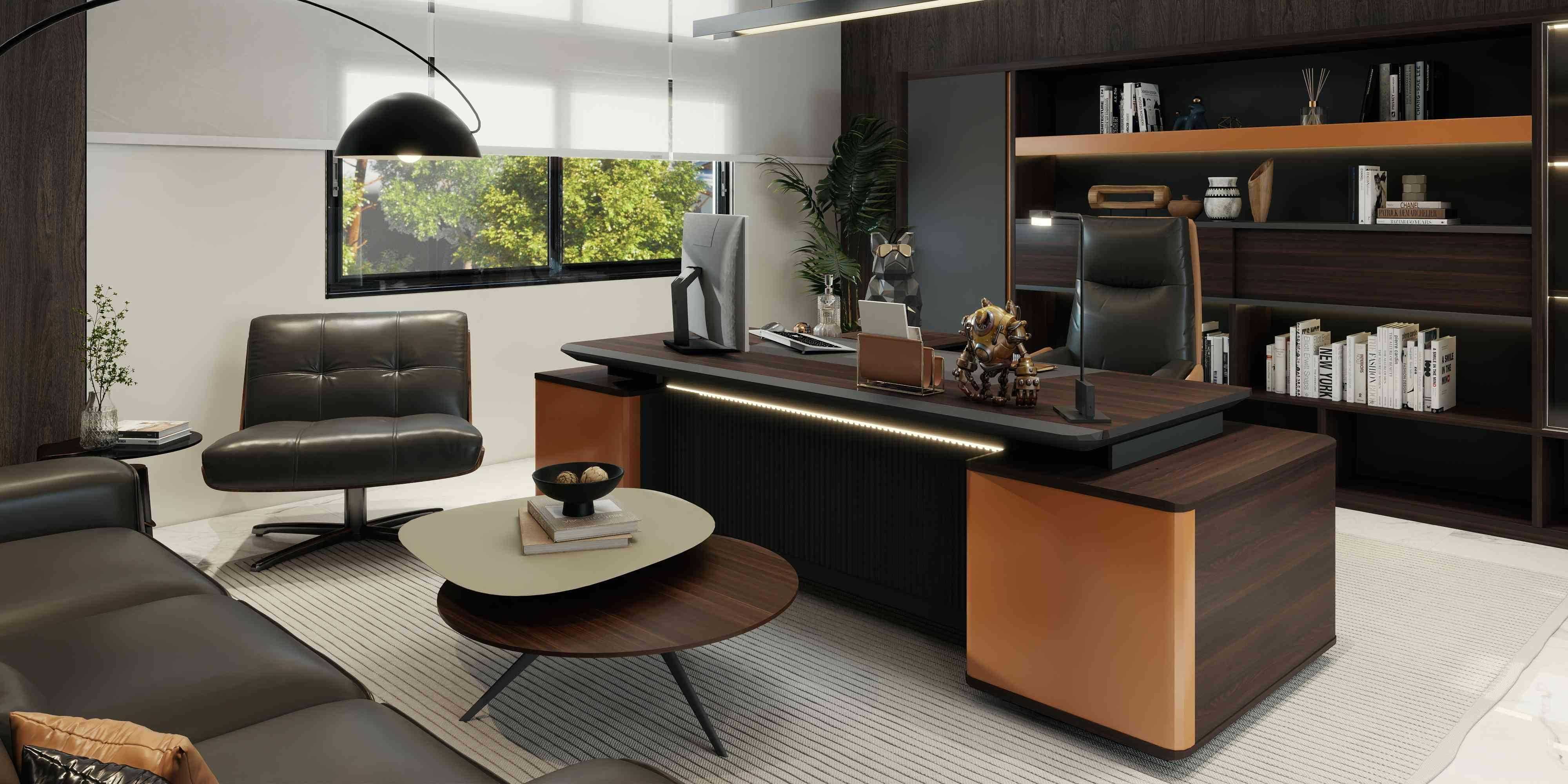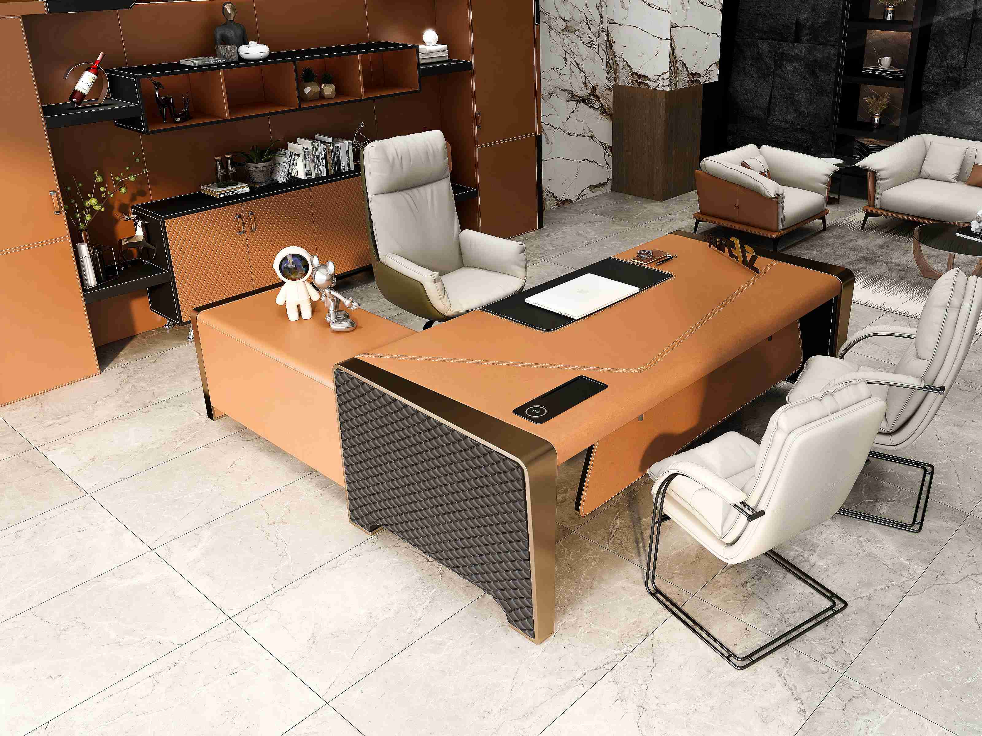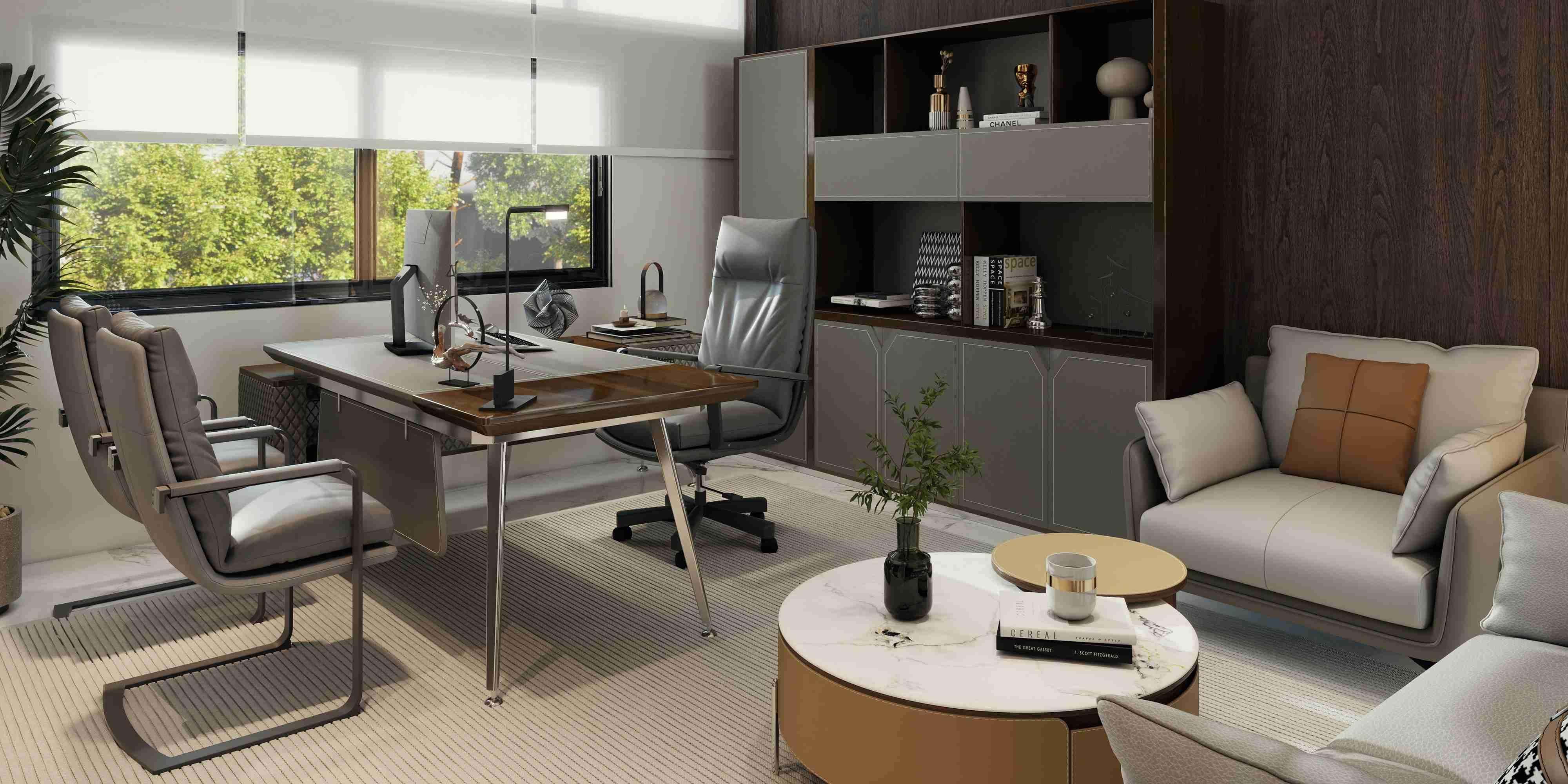For a cohesive office palette, we've opted for the timeless elegance of grey and orange. By incorporating these shades within our furniture range, we've created a sophisticated, multi-faceted spatial ambiance that exudes high-end sophistication!
