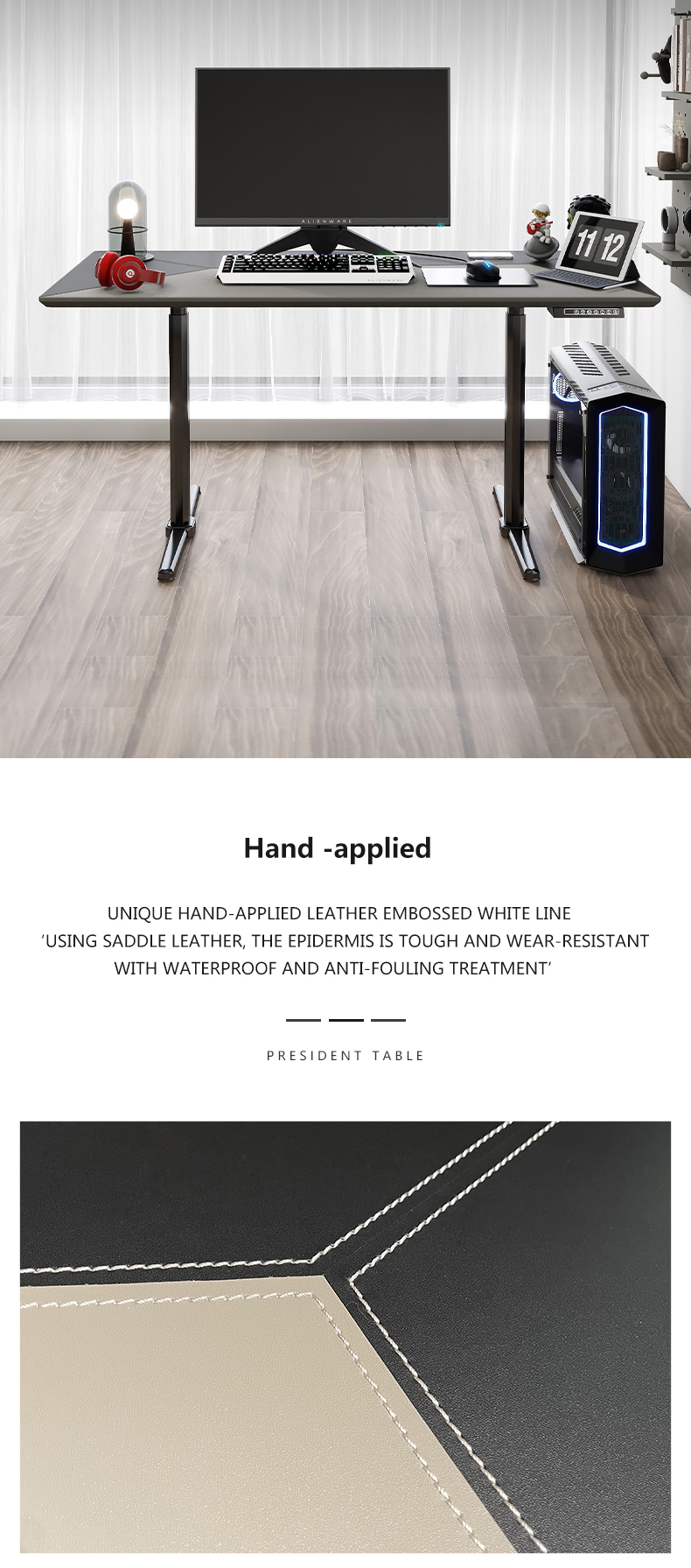 Spacious desktop, orderly storage, high-grade double-color patch leather large desktop, with good looks and space freedom.