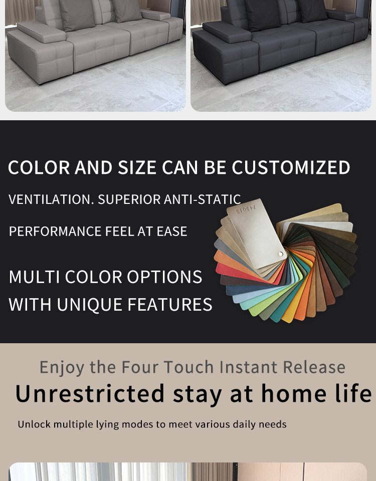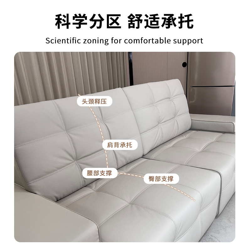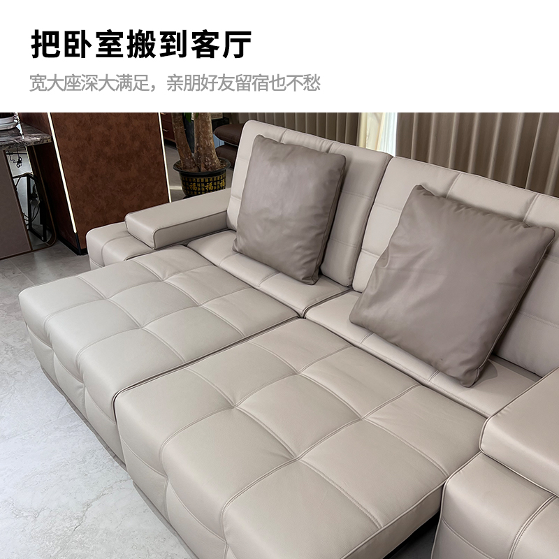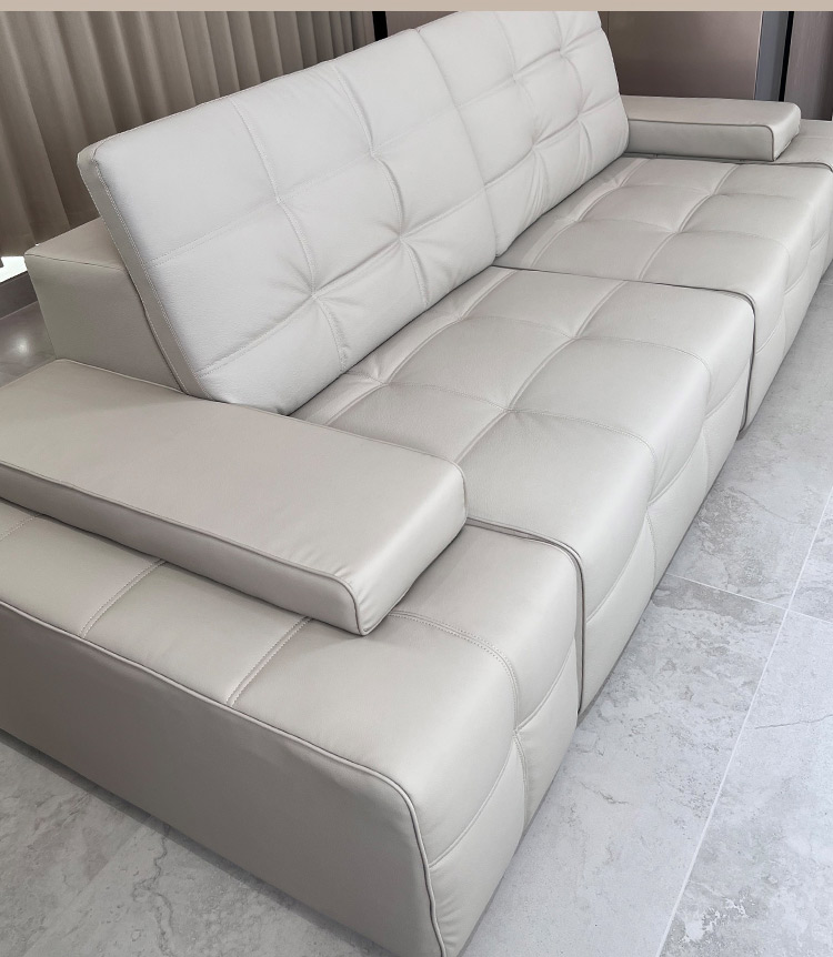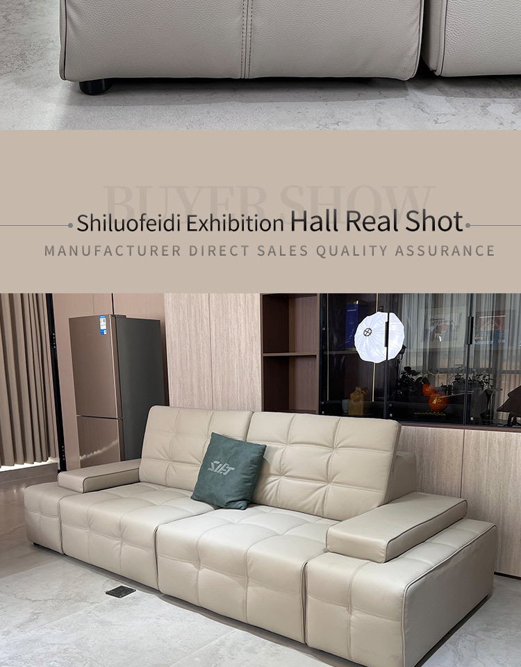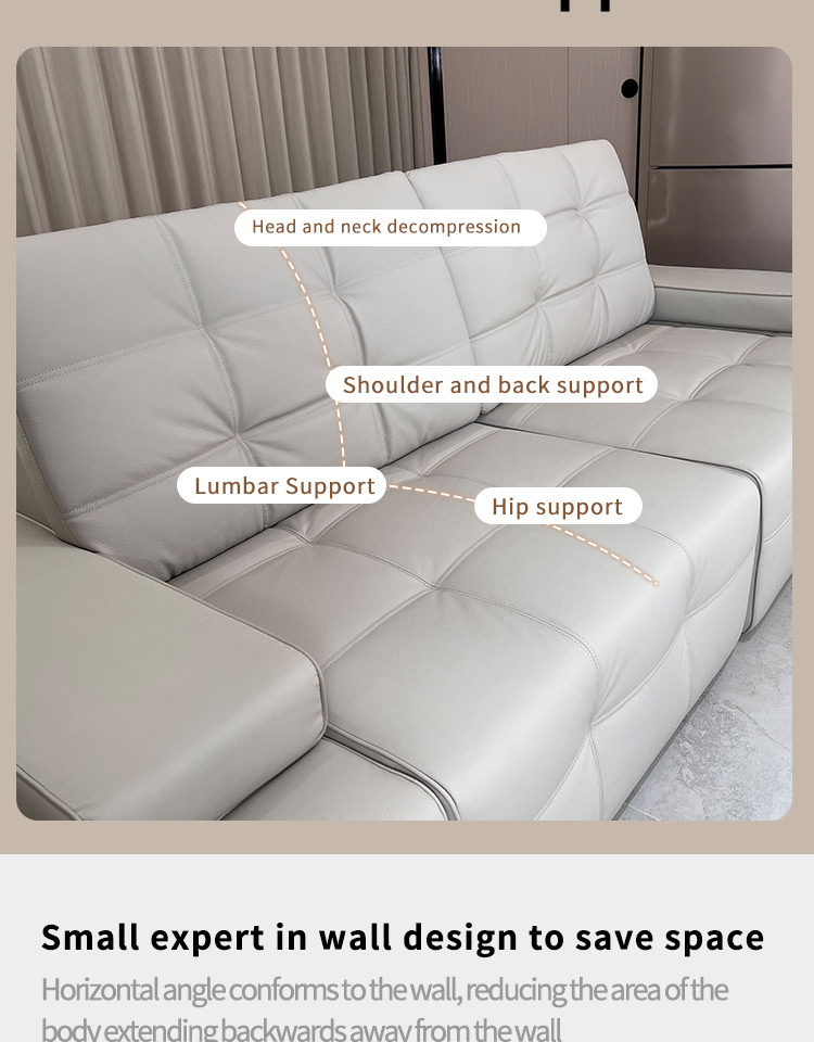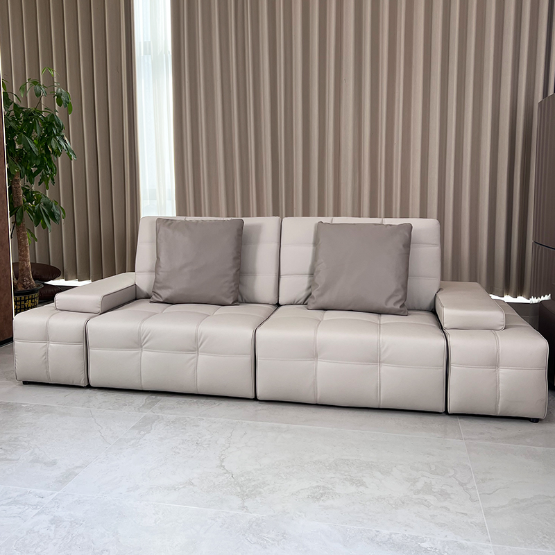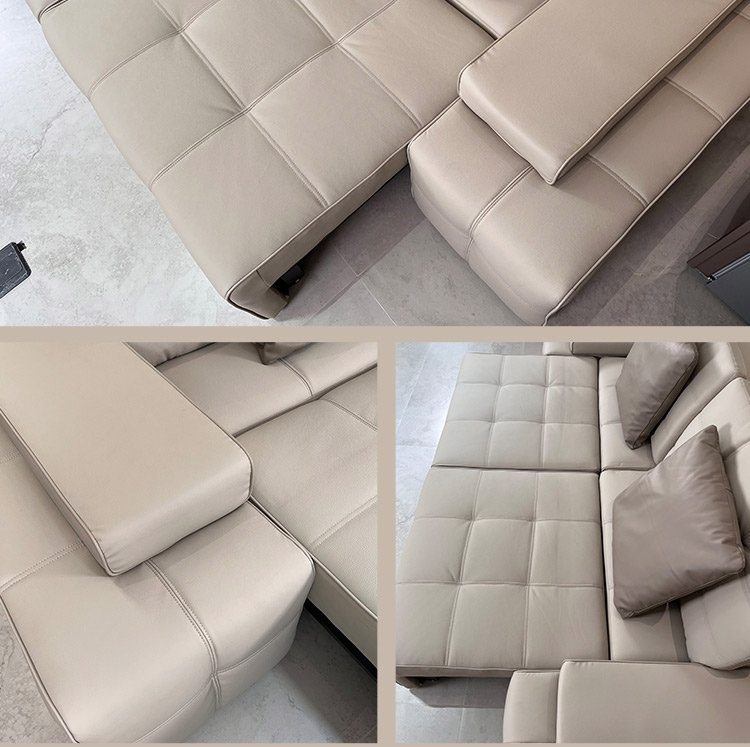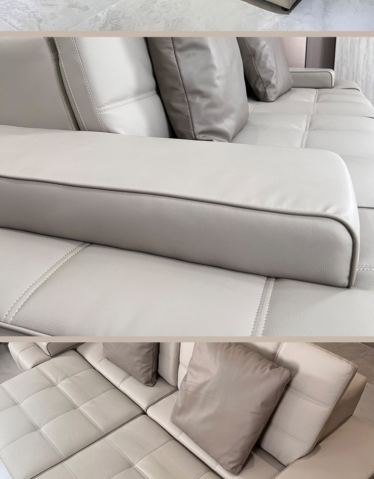 The Lawrence electric function sofa has a simple and elegant appearance, with a light beige color that exudes elegance. Modular design allows for flexible combination according to space. Equipped with electric adjustment function, it can easily adjust the sitting posture and also turn into a sofa bed to meet your different leisure needs. The backrest and cushion are soft and comfortable, paired with textured pillows, creating a cozy and relaxing corner of your home.
