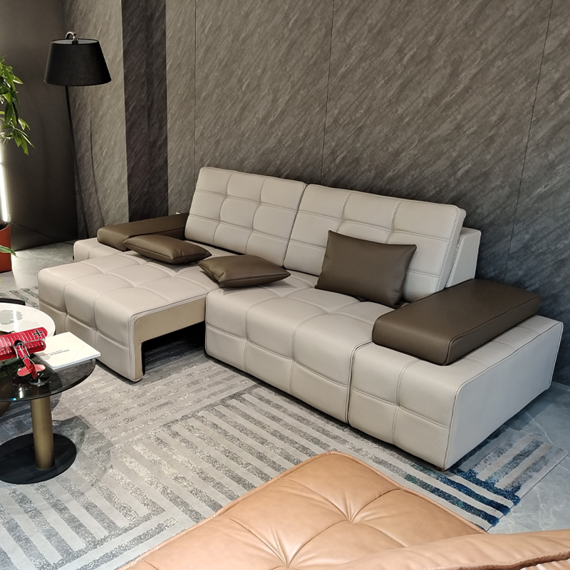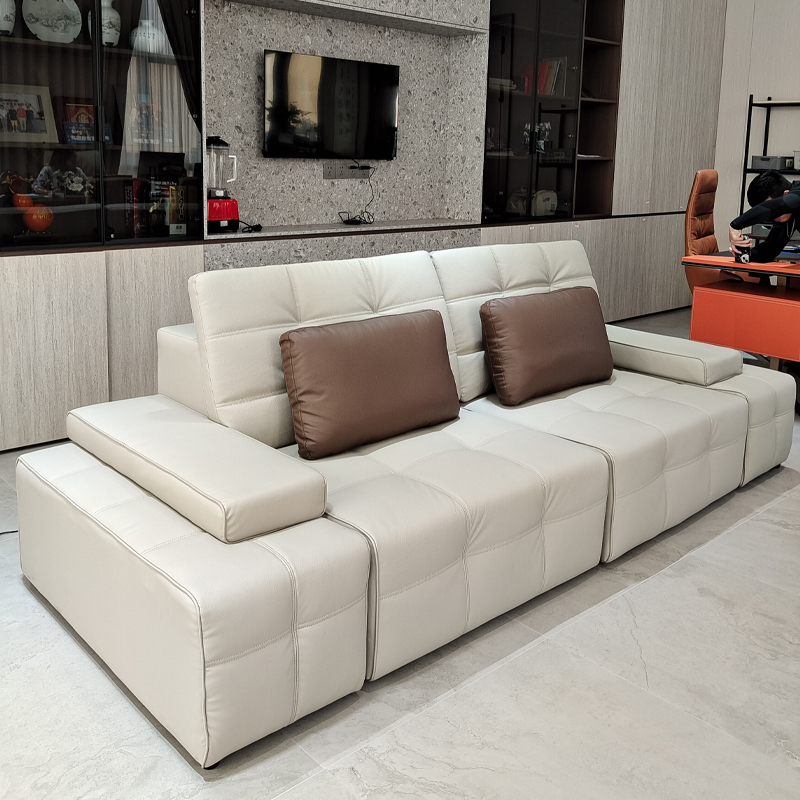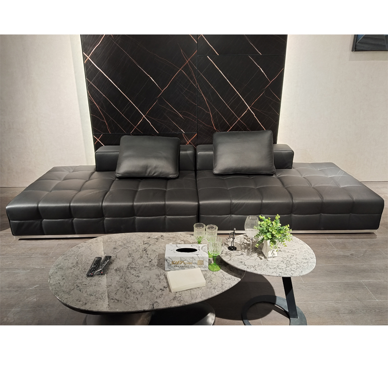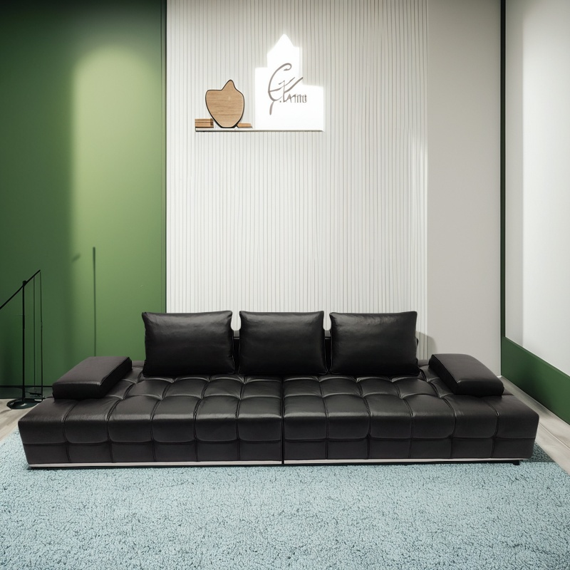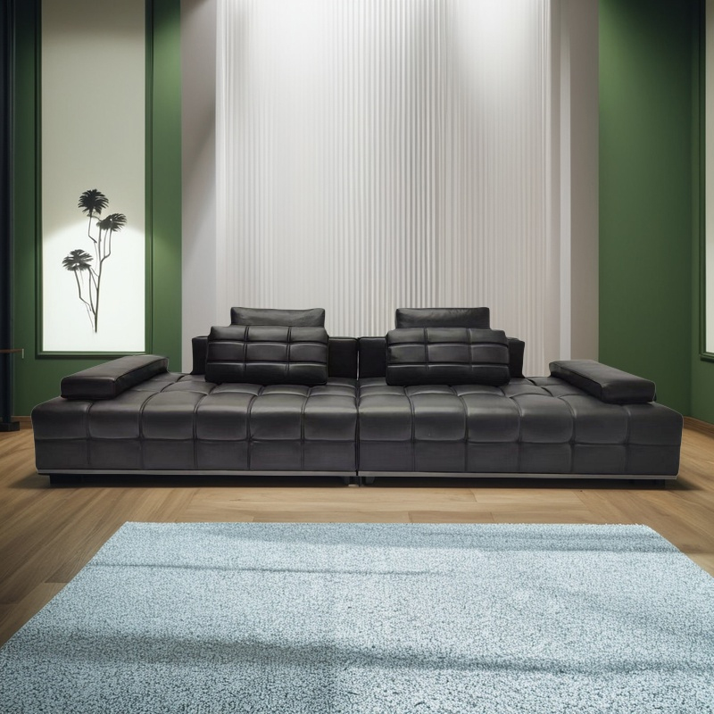 This Lawrence sofa redefines modern living room aesthetics with minimalist geometric lines. Crafted from carefully selected top layer cowhide, the black version exudes a calm aura, while the light gray version exudes a gentle and sophisticated feel. The two styles can be switched freely.