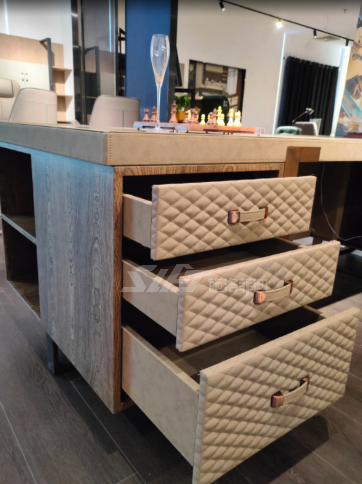 Spacious and atmospheric desktop, smoked wood grain, hand-veneering craftsmanship, adhere to the genuine and consistent quality.