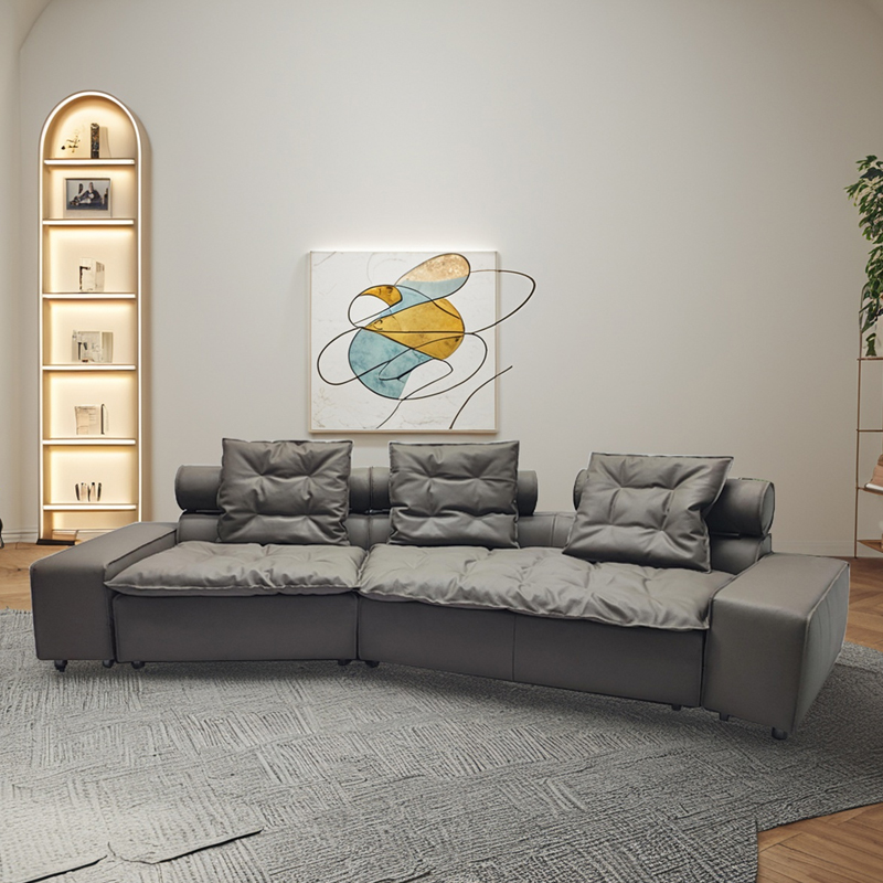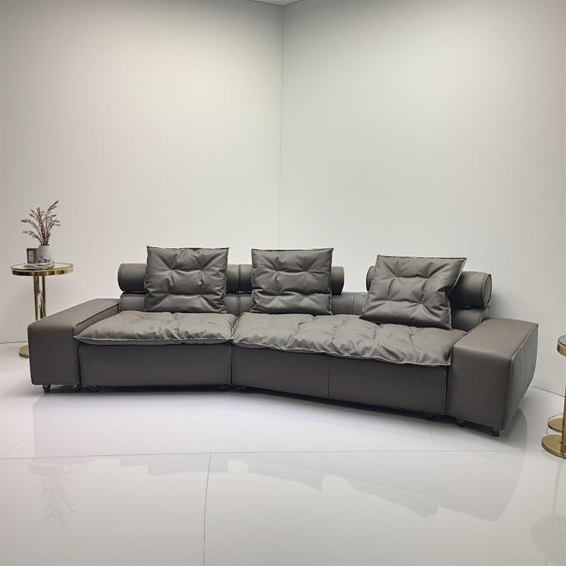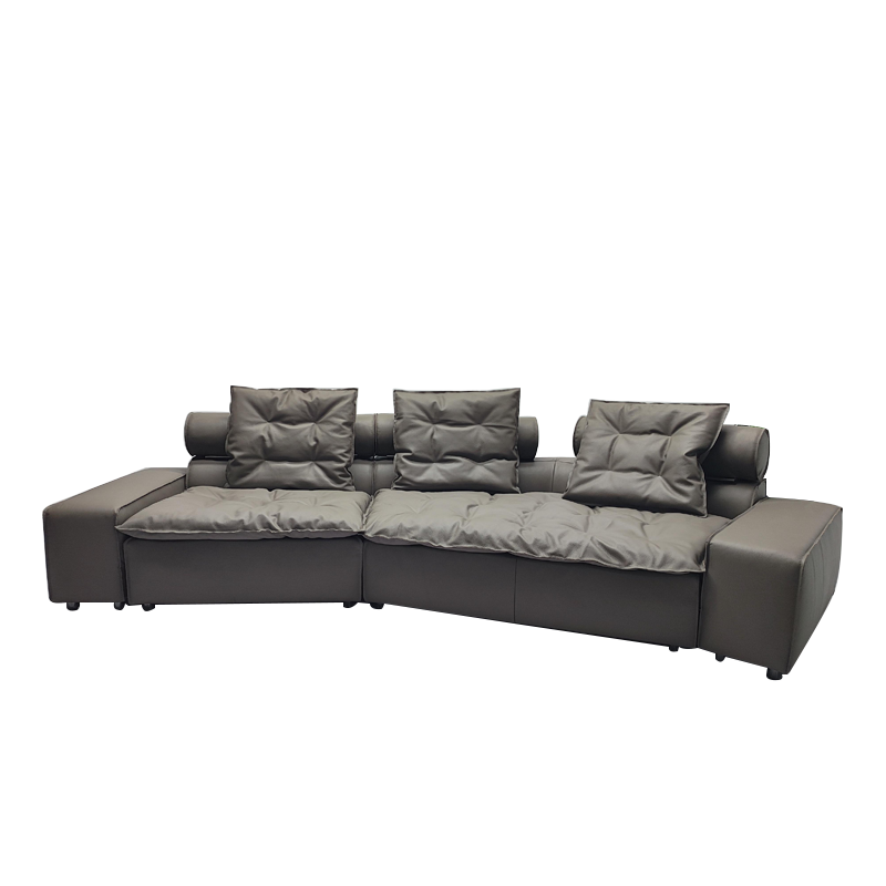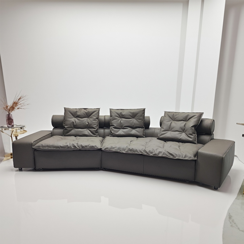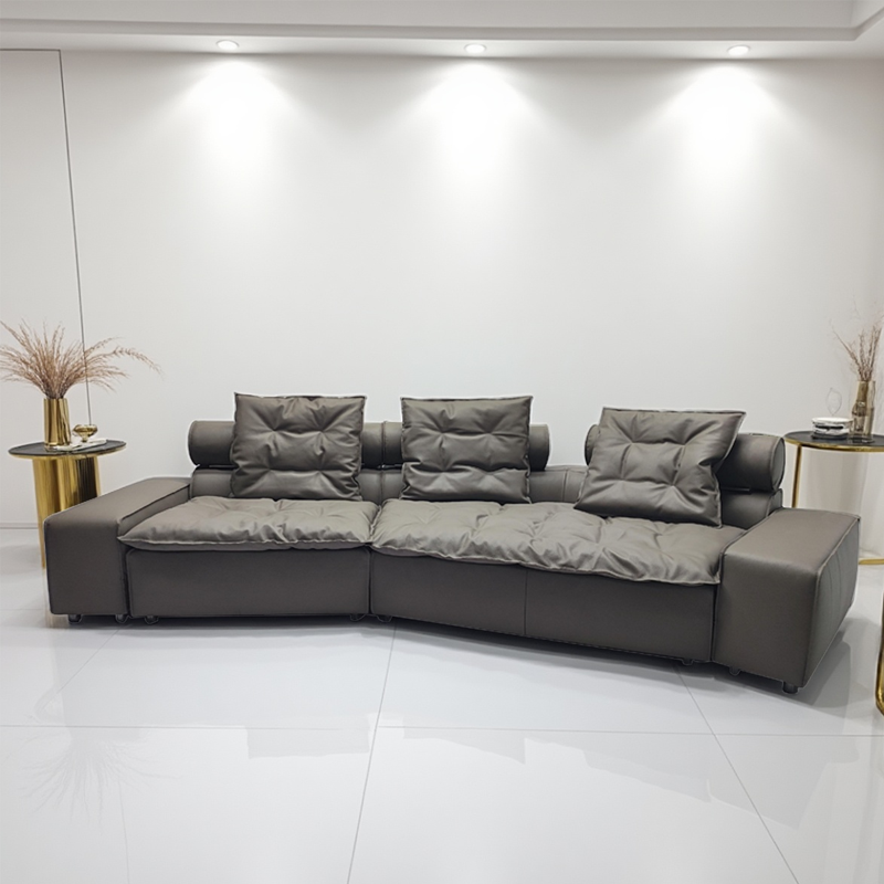 This Miami sofa is designed with modern minimalism as its core, adopting a modular combination form and achieving an L-shaped corner layout through square and full cushion units, meeting various spatial placement needs. The neutral tone of light gray brown combined with matte texture presents a low-key and luxurious visual experience. The cushion and cylindrical pillow use three-dimensional stitching technology to form a 3D grid texture, adding delicate layers to the simple design.