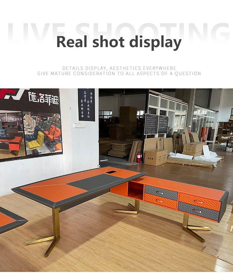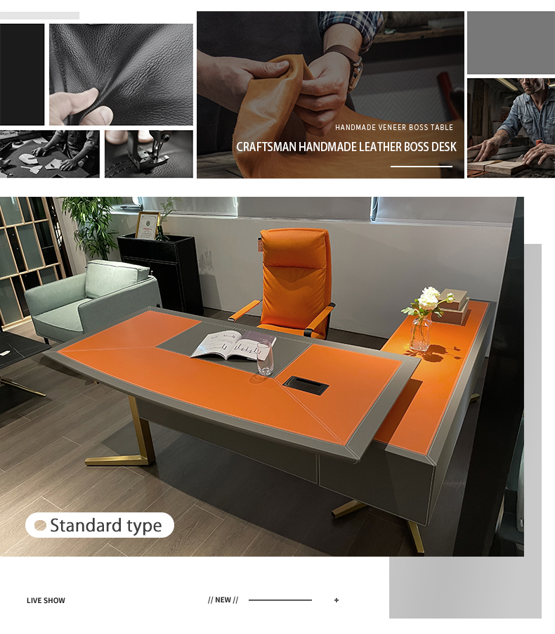 The auxiliary cabinet has built-in multi-grid, large-capacity storage, and the drawers are covered with leather inside and outside