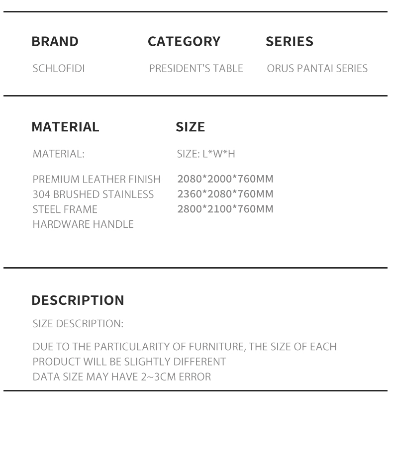 | Hermes Grey Double Cabinet office desk | W2000*D2000*h760 | Premium leather finish |