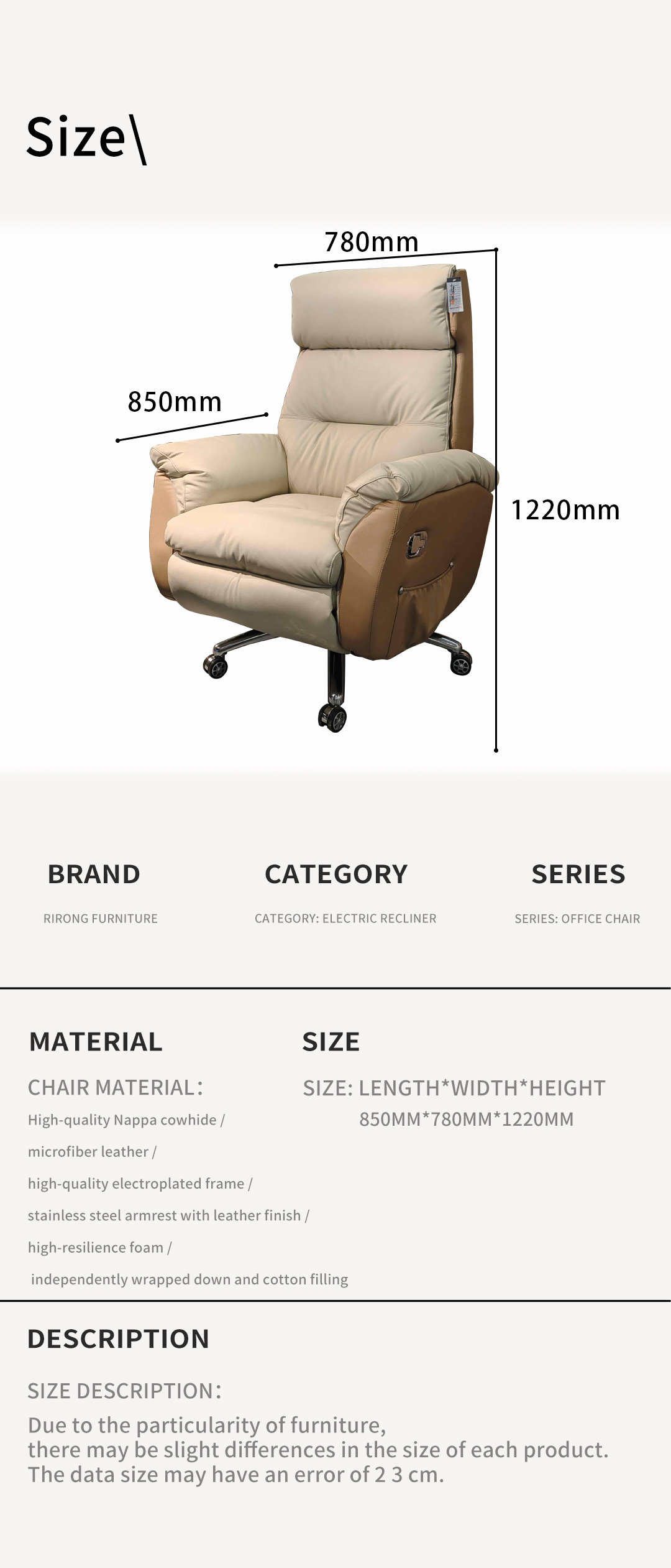 Want to enjoy ultimate comfort in busy work? This intelligent electric recliner is your ideal choice! The design features a full and thick backrest and cushion, paired with high-end beige and brown color schemes, instantly enhancing the spatial style. Whether it's the CEO's office or a private study, it can be perfectly integrated, showcasing extraordinary taste.